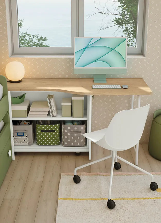 Lo scrittoio Arcon, moderno e spazioso, insieme alla sedia Luna, comoda e dal design raffinato, crea un angolo studio perfetto per ogni momento di concentrazione. A completare il tutto, i pannelli attrezzati Web offrono numerosi spazi per riporre libri, giocattoli e accessori, aiutando a mantenere l’ambiente sempre in ordine e ben organizzato.