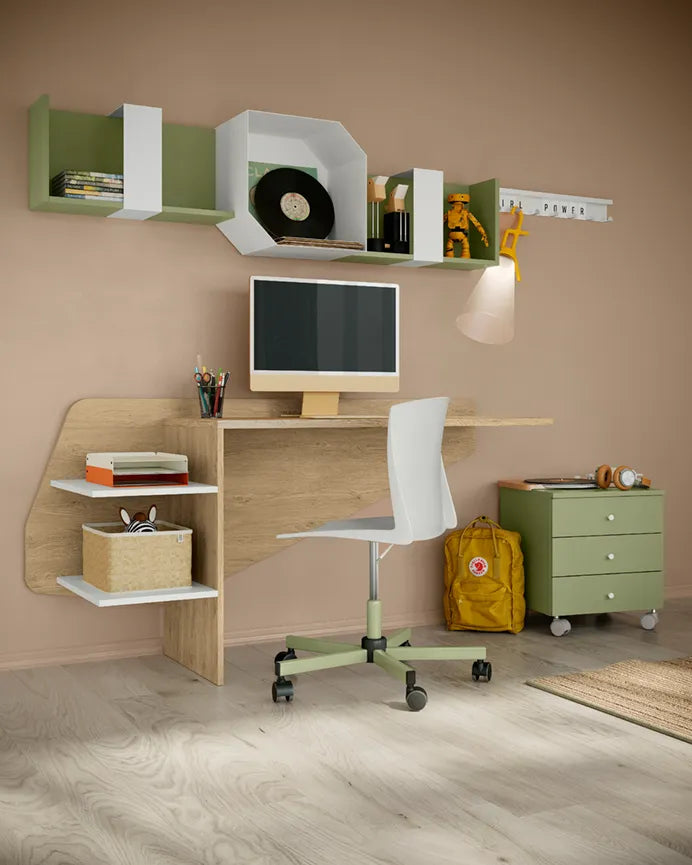 ✔ Scrivania Alpa con sedia Trak – Un angolo studio ergonomico e pratico, perfetto per concentrarsi al meglio.