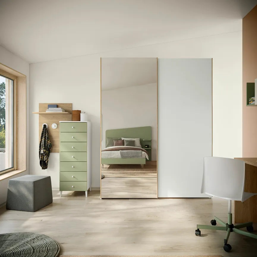 ✔ Armadio scorrevole Free con anta a specchio – Massima capienza e uno stile raffinato che amplia visivamente lo spazio.
