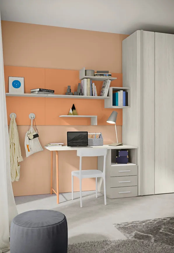 La cameretta Sunrise di Colombini Volo è la soluzione perfetta per chi cerca un ambiente accogliente, elegante e funzionale. Pensata per ragazzi e adolescenti, questa composizione offre spazi ben organizzati, linee moderne e materiali di altissima qualità, garantendo un mix perfetto tra praticità e stile contemporaneo.