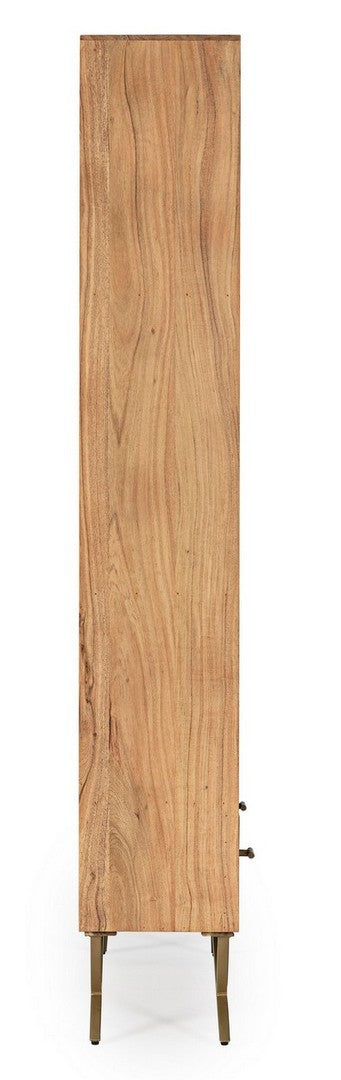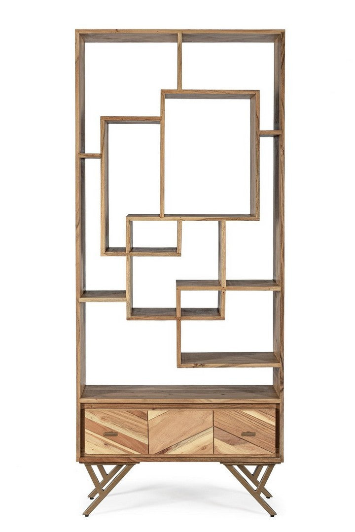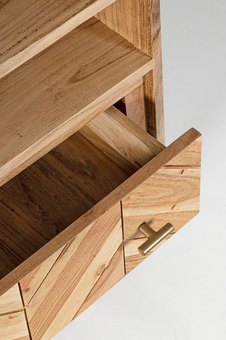 STRUTTURA IN LEGNO DI ACACIA, SCHIENALI ED INTERNO CASSETTI IN COMPENSATO, FINITURA A BASE DI VERNICE POLIURETANICA. GAMBE IN ACCIAIO VERNICIATO A POLVERE EPOSSIDICA.