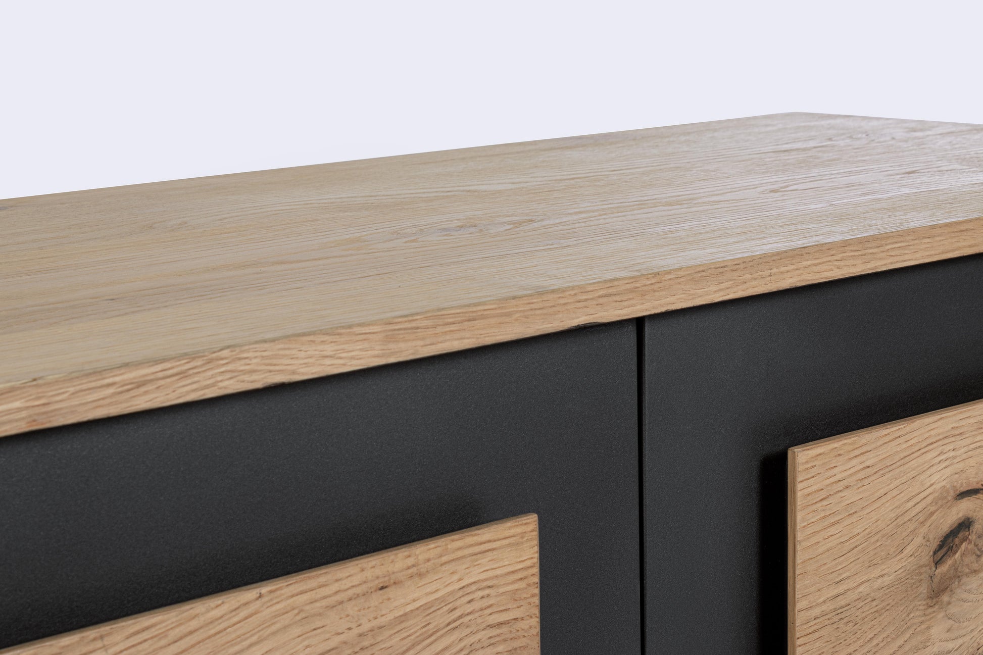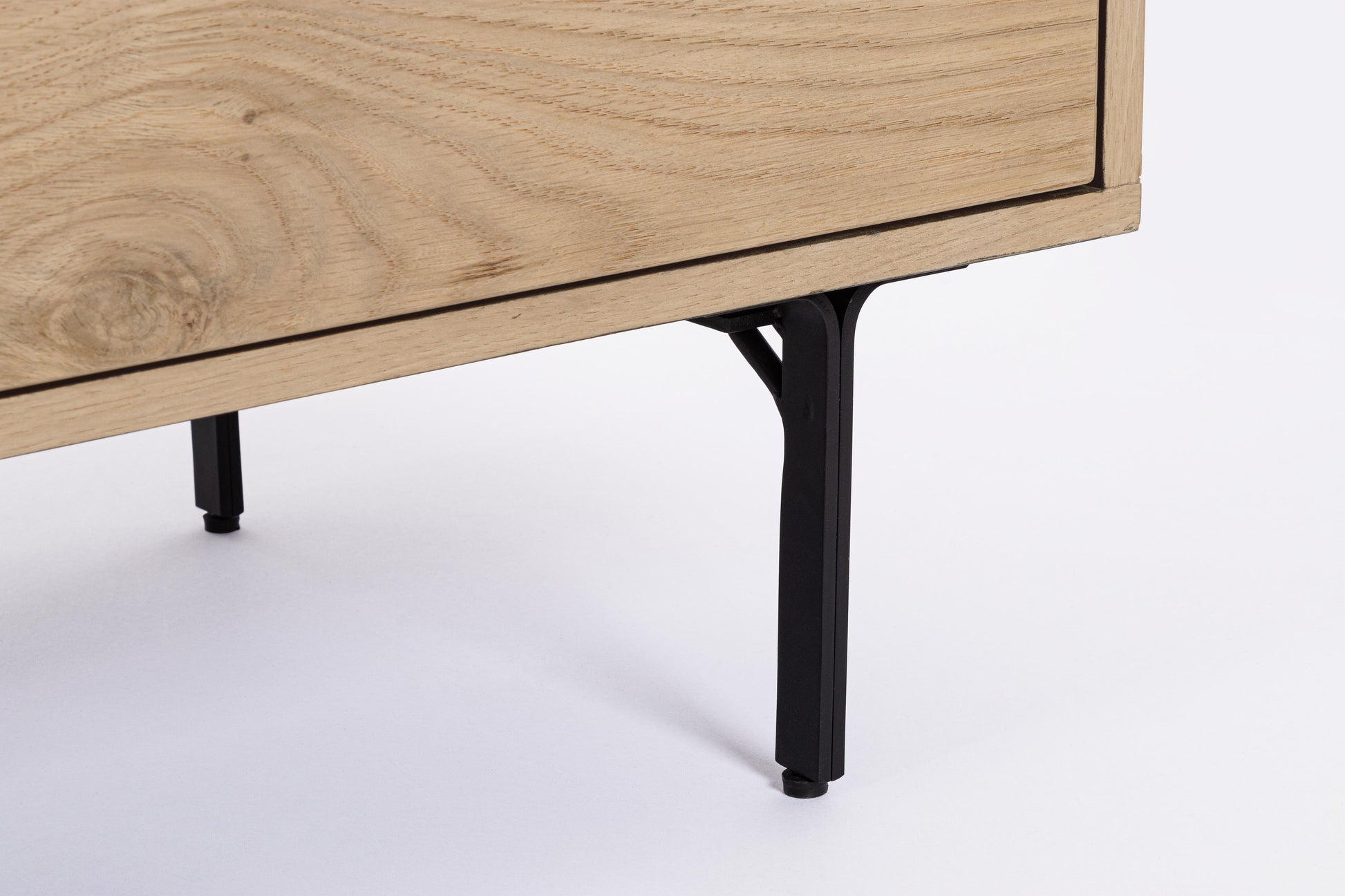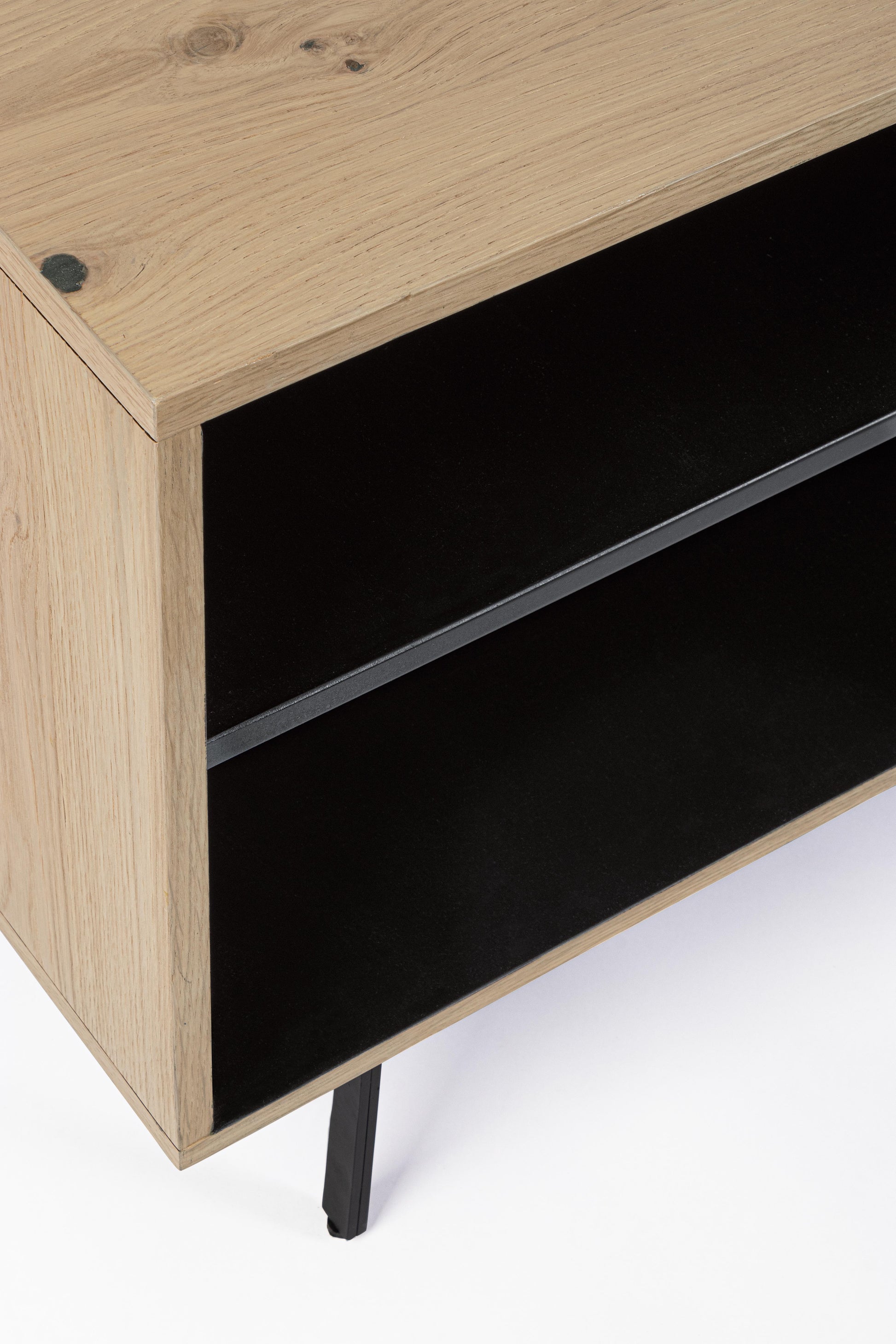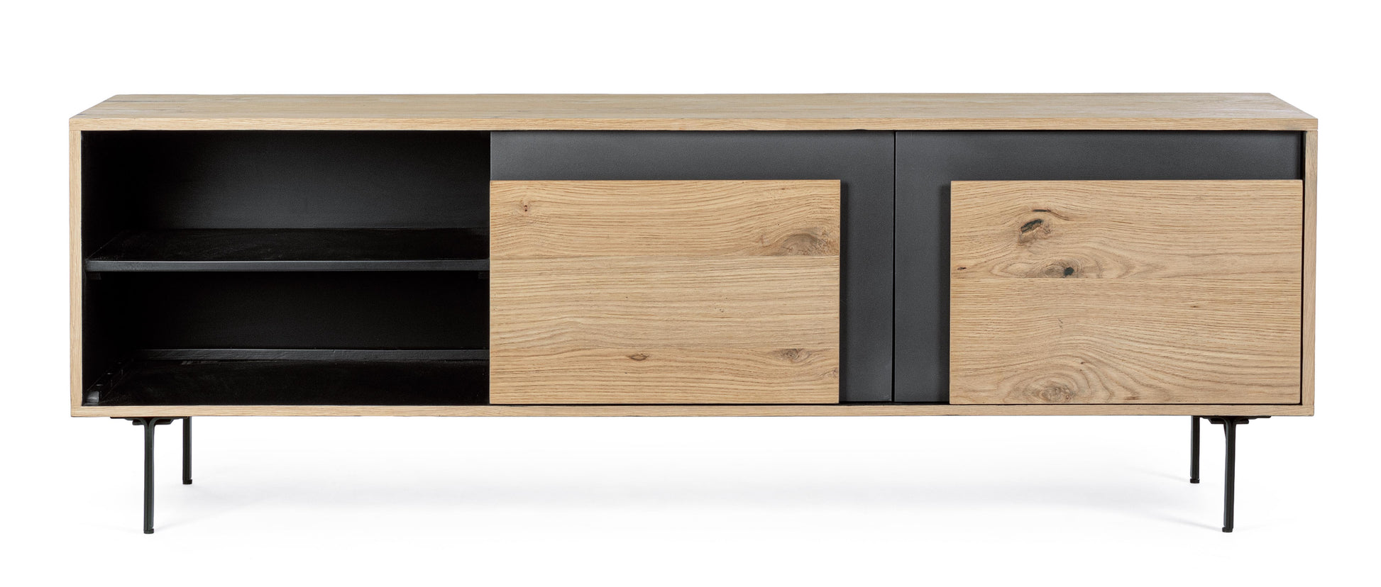MDF IMPIALLACCIATO ROVERE. FINITURA NATURALE CON VERNICE A BASE D'ACQUA. VANO PORTE COMPRENSIVO DI MENSOLA. GAMBE IN ACCIAIO VERNICIATE A POLVERE EPOSSIDICA.