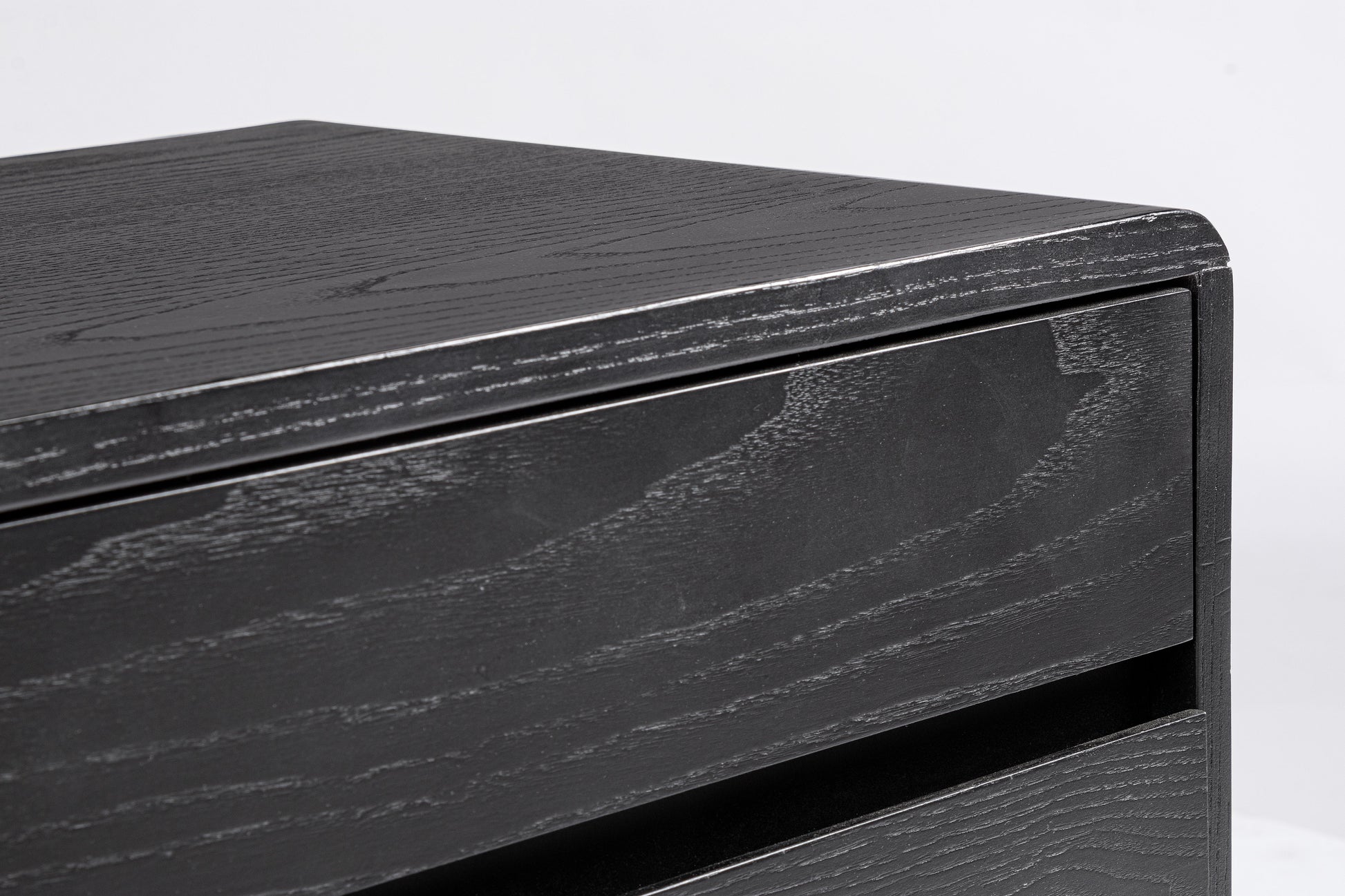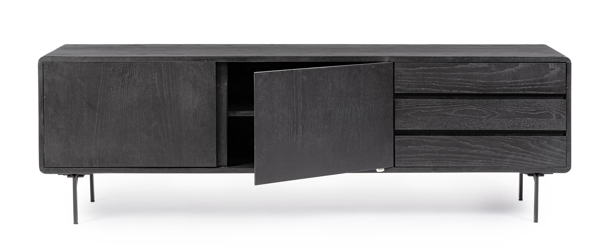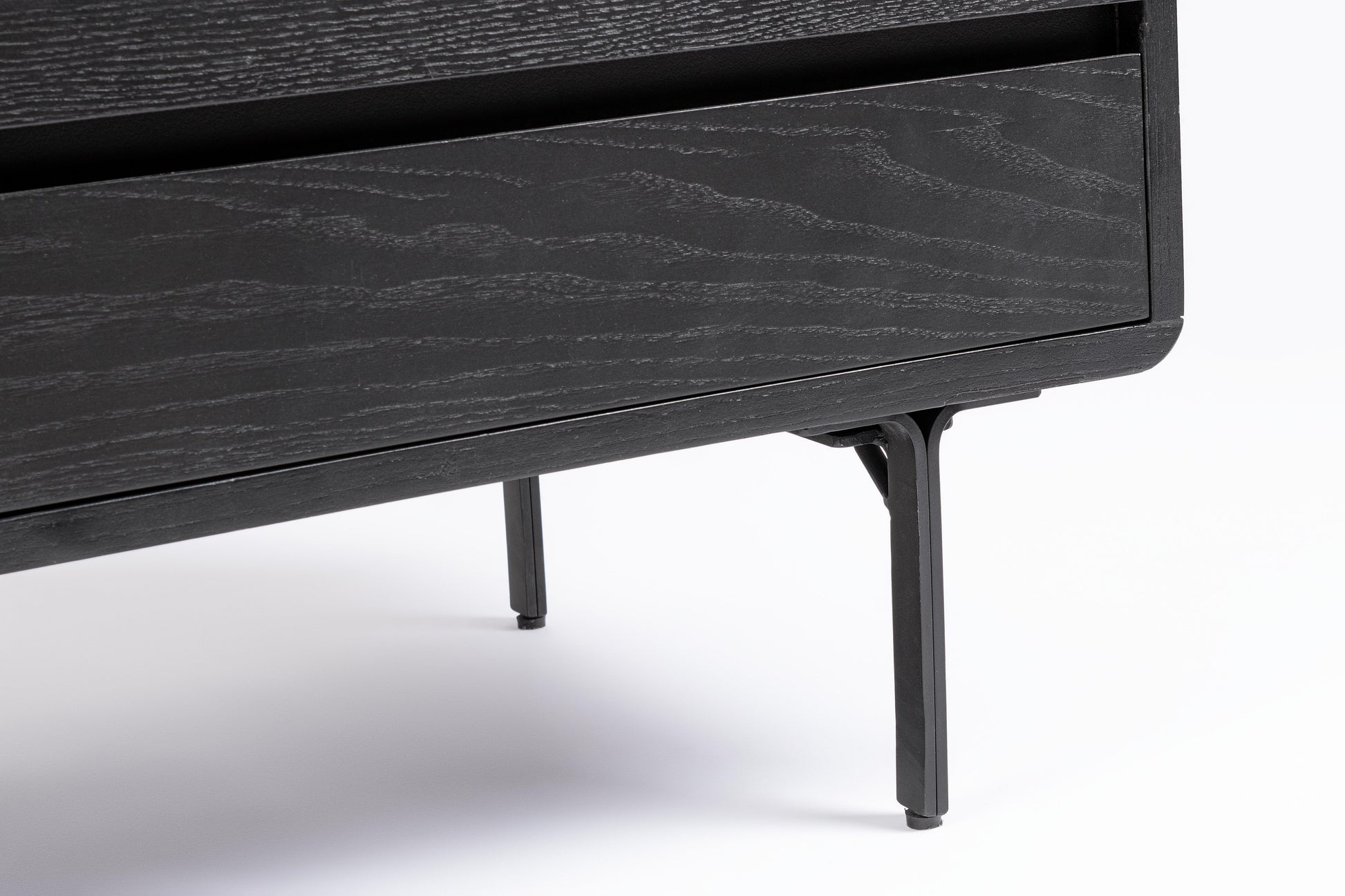 MDF IMPIALLACCIATO LEGNO DI FRASSINO. FINITURA A BASE DI NITROCELLULOSA. VANO PORTE COMPRENSIVO DI MENSOLA. INTERNO CASSETTI DI COLORE NERO CON GUIDE SCORREVOLI IN ACCIAIO. GAMBE IN ACCIAIO VERNICIATE A POLVERE EPOSSIDICA.