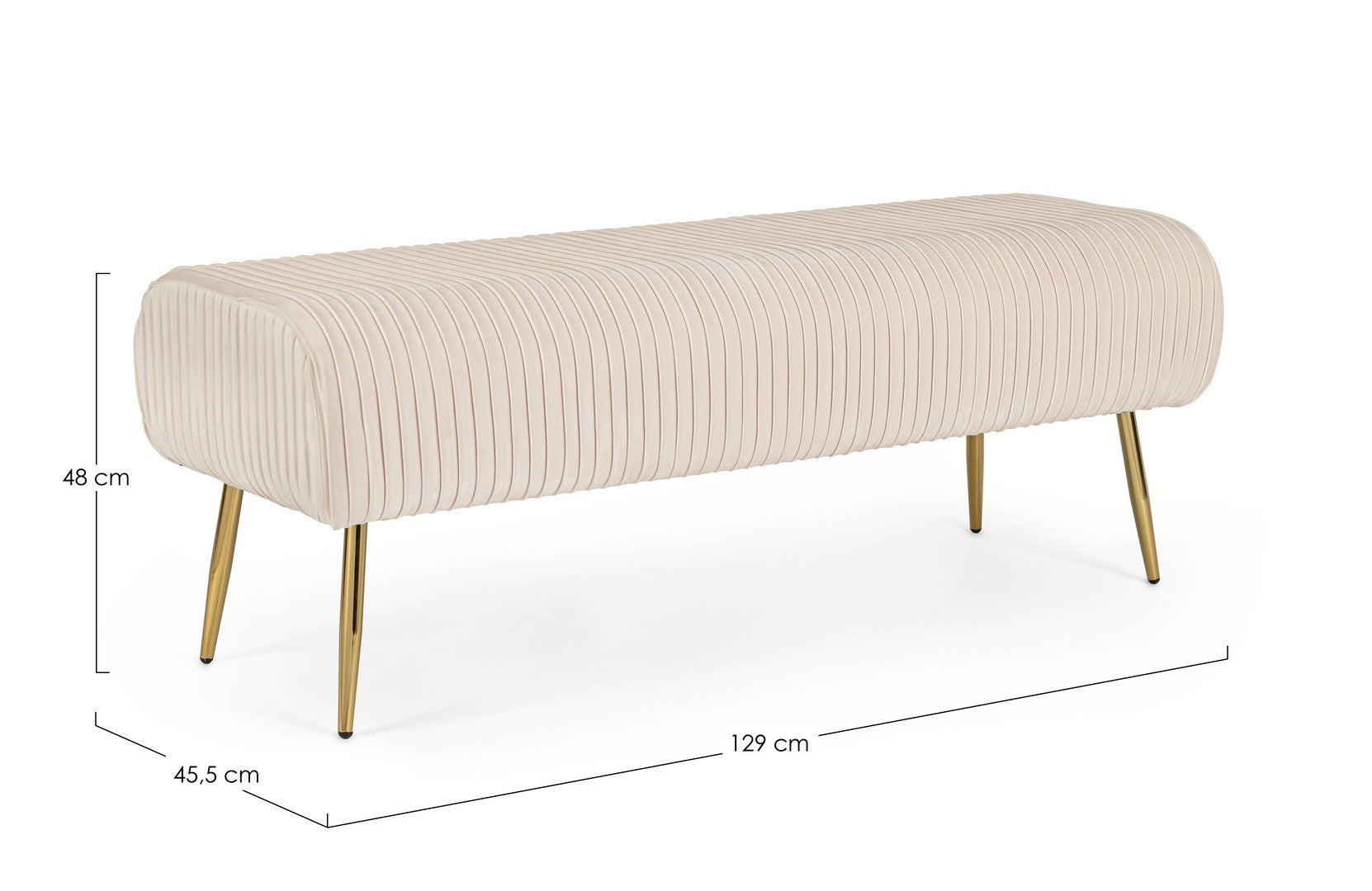 STRUTTURA IN MDF . GAMBE IN ACCIAIO CROMATO COLOR ORO. RIVESTIMENTO IN POLIESTERE EFFETTO VELLUTO A COSTE. DENSITA' IMBOTTITURA 30KG/M3.