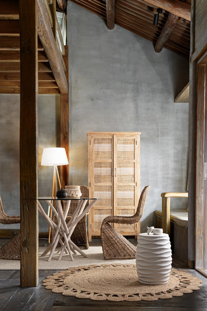 LEGNO DI QUERCIA, PARALUME IN TERITAL E COTONE. LAMP. E27 MAX40W, E27 8-11W COMP. FLUOR INTEGR. RISP. EN., E27 28W ALOG. RISP. EN. LAMPADINA NON INCLUSA. LUNGHEZZA CAVO: 3.49 M.