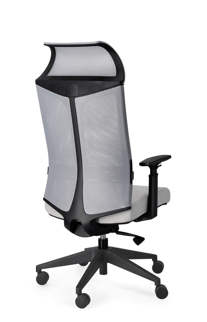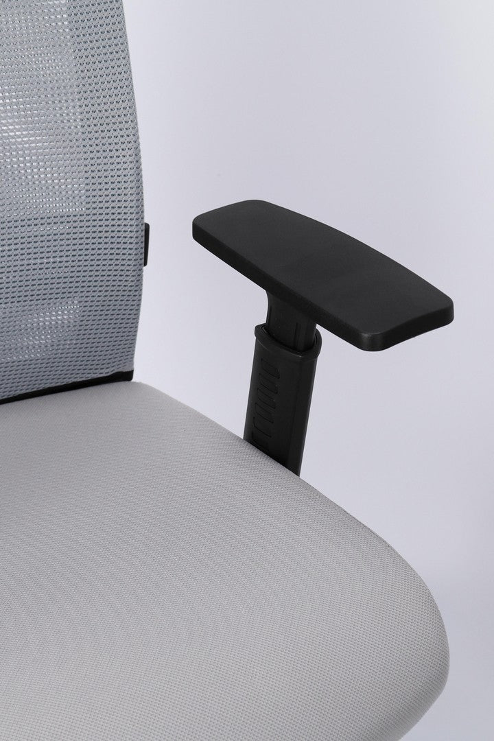 BASE IN NYLON Ø71 CM. RUOTE IN NYLON. SEDUTA CON IMBOTTITURA IN SCHIUMA POLIURETANICA DENSITA' 60KG/M3 E RIVESTIMENTO IN TESSUTO A RETE POLIESTERE 100%. SCHIENALE IN PLASTICA (PP) CON SUPPORTO LOMBARE CON RIVESTIMENTO IN TESSUTO A RETE POLIESTERE 100%. DOTATA DI MECCANISMO SYNCHRO CHE PERMETTE IL MOVIMENTO SINCRONIZZATO TRA SEDILE E SCHIENALE E IL BLOCCO DELLO SCHIENALE NELLA POSIZIONE DESIDERATA (3 POSIZIONI). ALTEZZA SEDUTA E BRACCIOLI REGOLABILE.