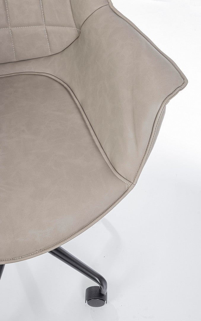 BASE IN ACCIAIO VERNICIATO A POLVERE Ø60 CM. RUOTE IN PLASTICA (PP). STRUTTURA IN COMPENSATO. IMBOTTITURA IN SCHIUMA POLIURETANICA. RIVESTIMENTO IN SIMILPELLE. REGOLABILE IN ALTEZZA CON SISTEMA A GAS.