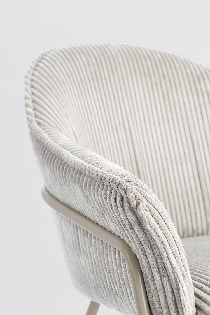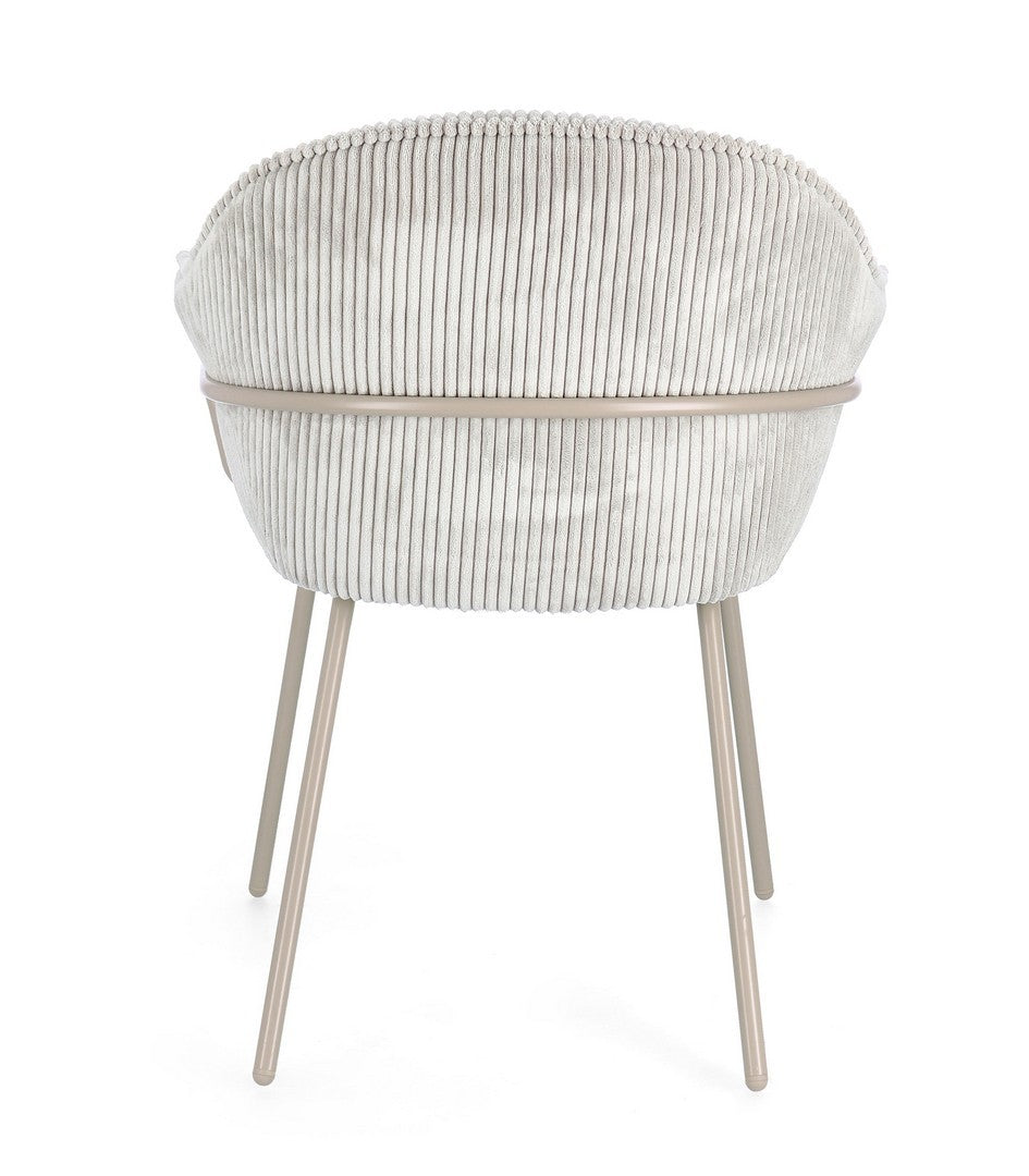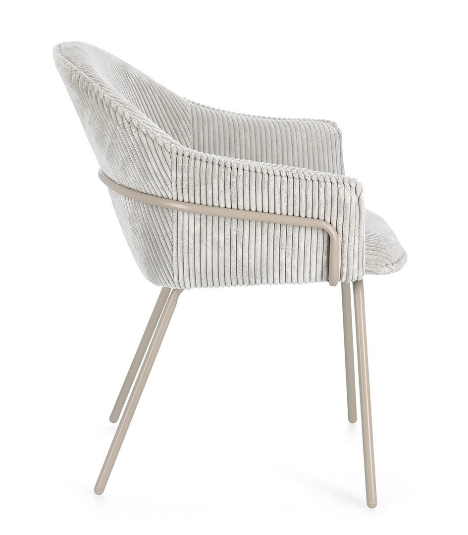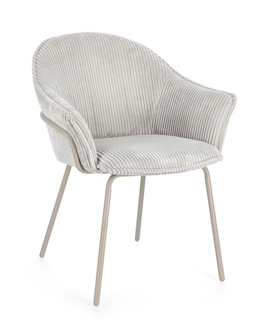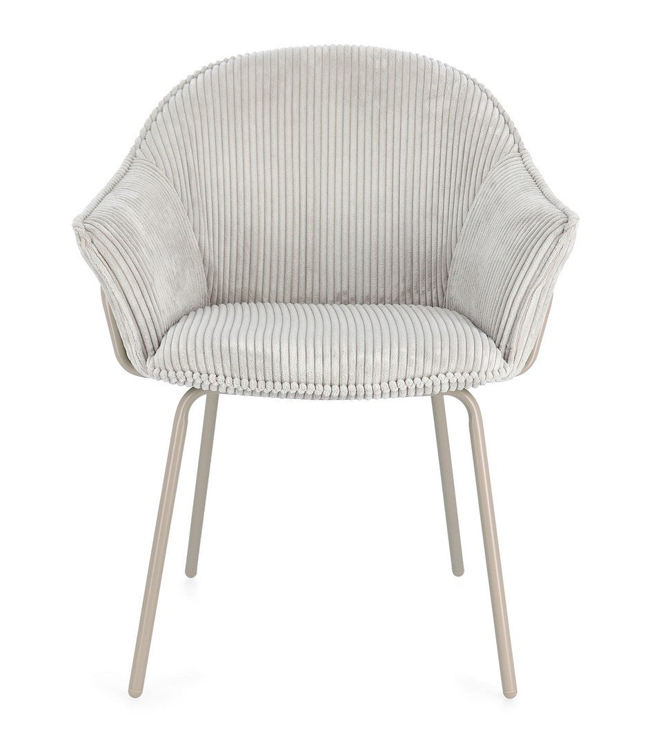 SEDUTA IN COMPENSATO CON IMBOTTITURA IN SCHIUMA POLIURETANICA. RIVESTIMENTO IN 100% POLIESTERE. GAMBE IN ACCIAIO VERNICIATE A POLVERE EPOSSIDICA.