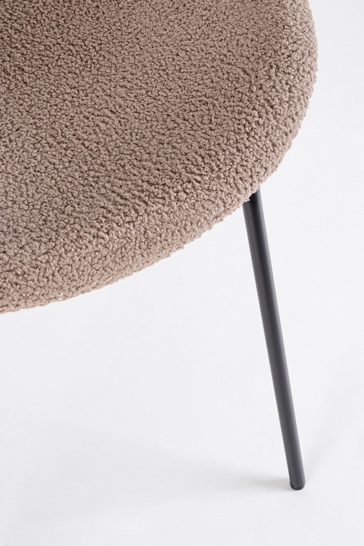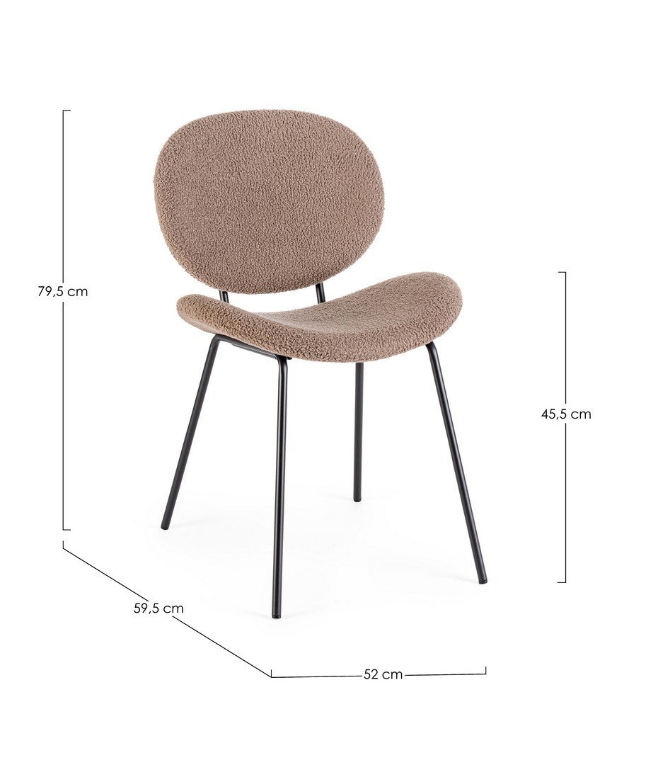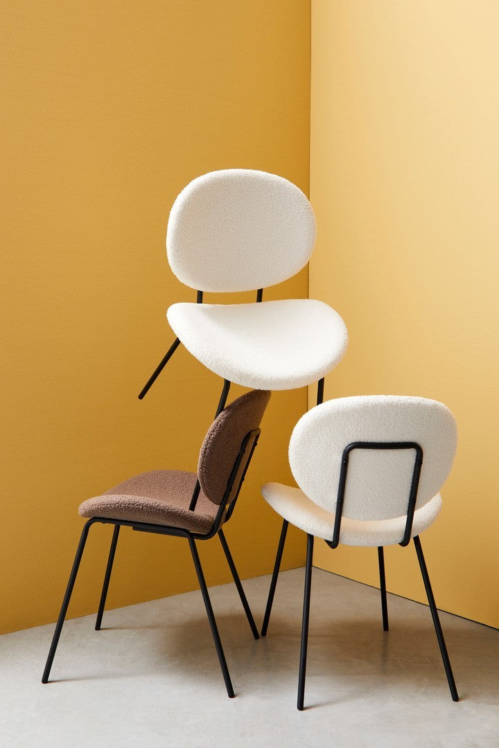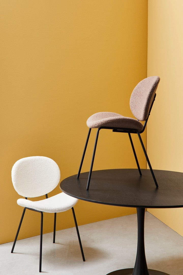 STRUTTURA IN ACCIAIO VERNICIATO A POLVERE EPOSSIDICA. SEDUTA E SCHIENALE IN POLIESTERE EFFETTO BOUCLE'.