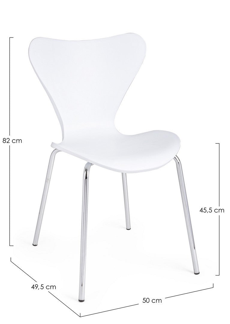 GAMBE IN ACCIAIO CROMATO. SEDUTA E SCHIENALE IN PLASTICA (PP). IMPILABILE.