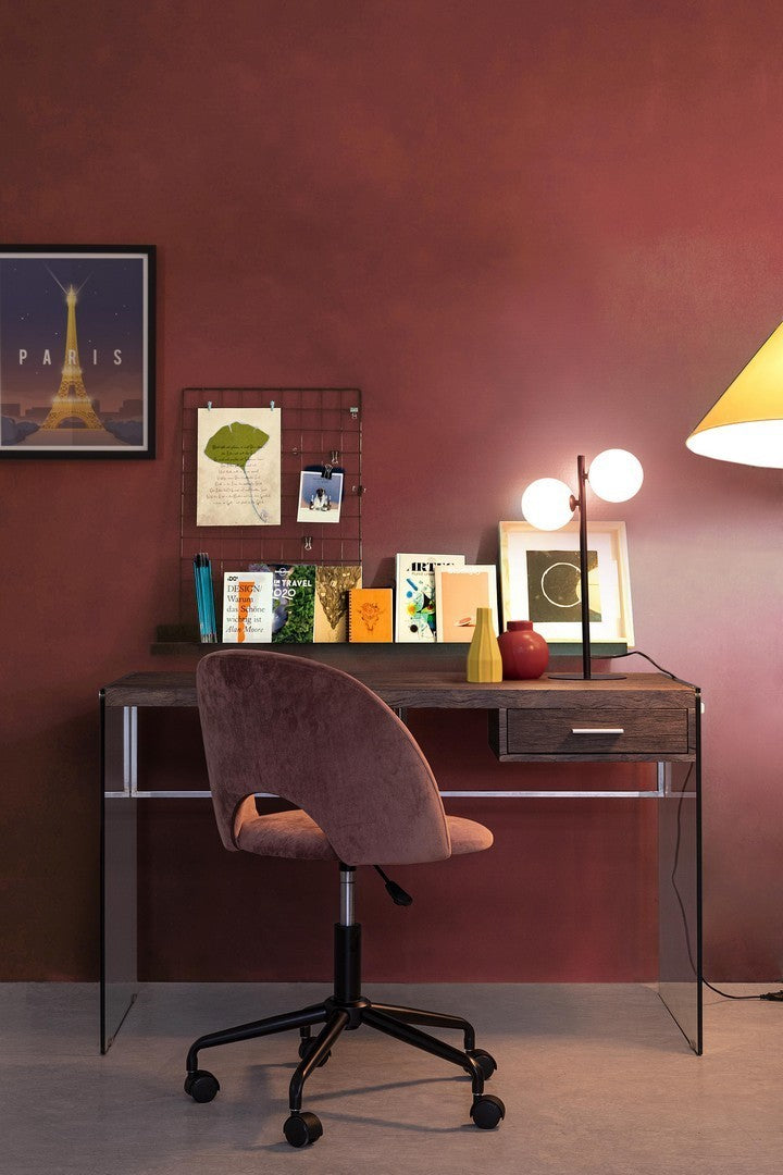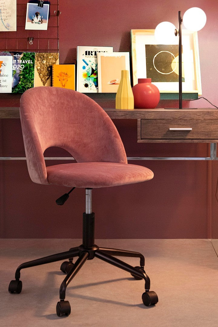 BASE IN ACCIAIO VERNICIATO A POLVERE Ø60 CM. RUOTE IN PLASTICA (PP). STRUTTURA IN COMPENSATO. IMBOTTITURA IN SCHIUMA POLIURETANICA. RIVESTIMENTO IN VELLUTO (100% POLIESTERE). REGOLABILE IN ALTEZZA CON SISTEMA A GAS. DA ASSEMBLARE