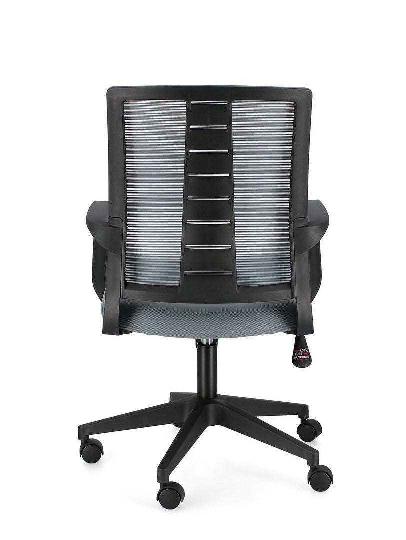 BASE IN NYLON Ø62.5 CM. RUOTE IN PLASTICA (PU). SEDUTA IMBOTTITA IN SCHIUMA POLIURETANICA E RIVESTITA IN TESSUTO A RETE POLIESTERE 100%. SCHIENALE IN PLASTICA (PP) RIVESTITO IN TESSUTO A RETE POLIESTERE 100%. ALTEZZA REGOLABILE.