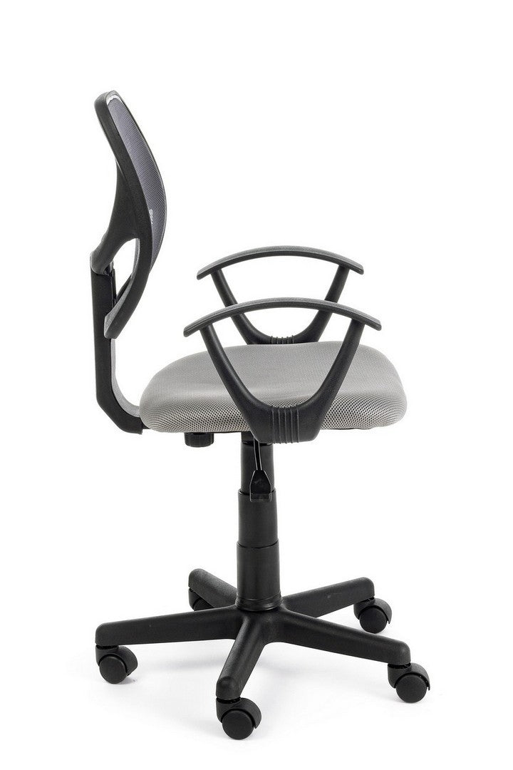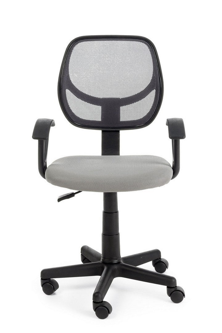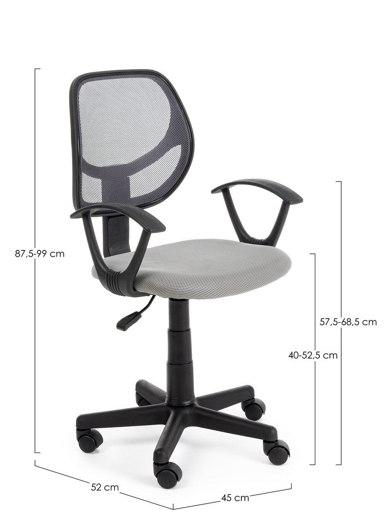 BASE IN NYLON Ø53 CM. RUOTE IN NYLON. SEDUTA IMBOTTITA IN SCHIUMA E RIVESTITA IN TESSUTO A RETE. SCHIENALE RIVESTITO IN TESSUTO A RETE. BRACCIOLO IN PLASTICA (PP). ALTEZZA REGOLABILE.