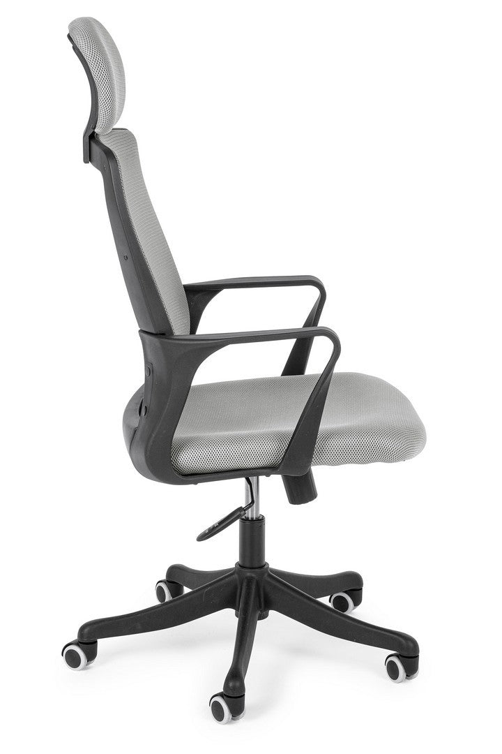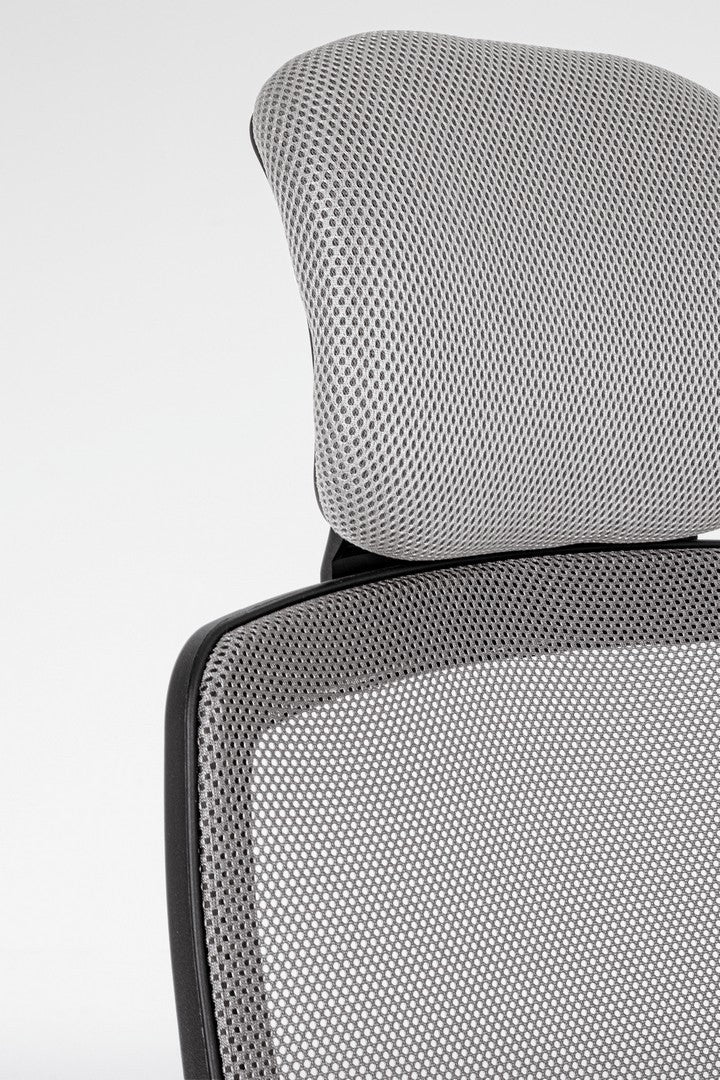 BASE IN NYLON Ø60 CM. RUOTE IN PLASTICA (PU). SEDUTA E POGGIATESTA IMBOTTITI IN SCHIUMA E RIVESTITA IN TESSUTO A RETE POLIESTERE 100%. SCHIENALE IN PLASTICA (PP) RIVESTITO IN TESSUTO A RETE POLIESTERE 100%. ALTEZZA REGOLABILE.