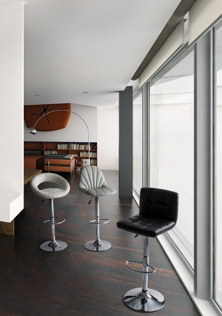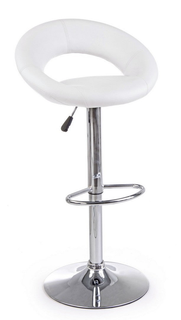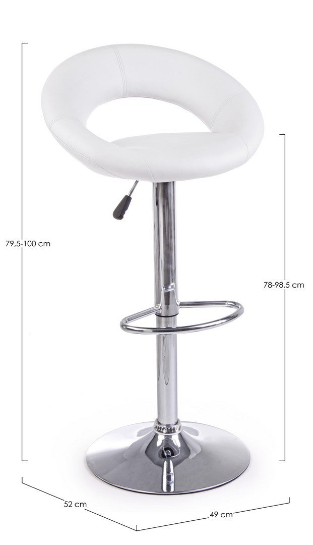 STRUTTURA IN ACCIAIO CROMATO. BASE Ø 41CM. SEDUTA IMBOTTITA E RIVESTITA IN SIMILPELLE. REGOLAZIONE DELL'ALTEZZA CON SISTEMA A GAS.