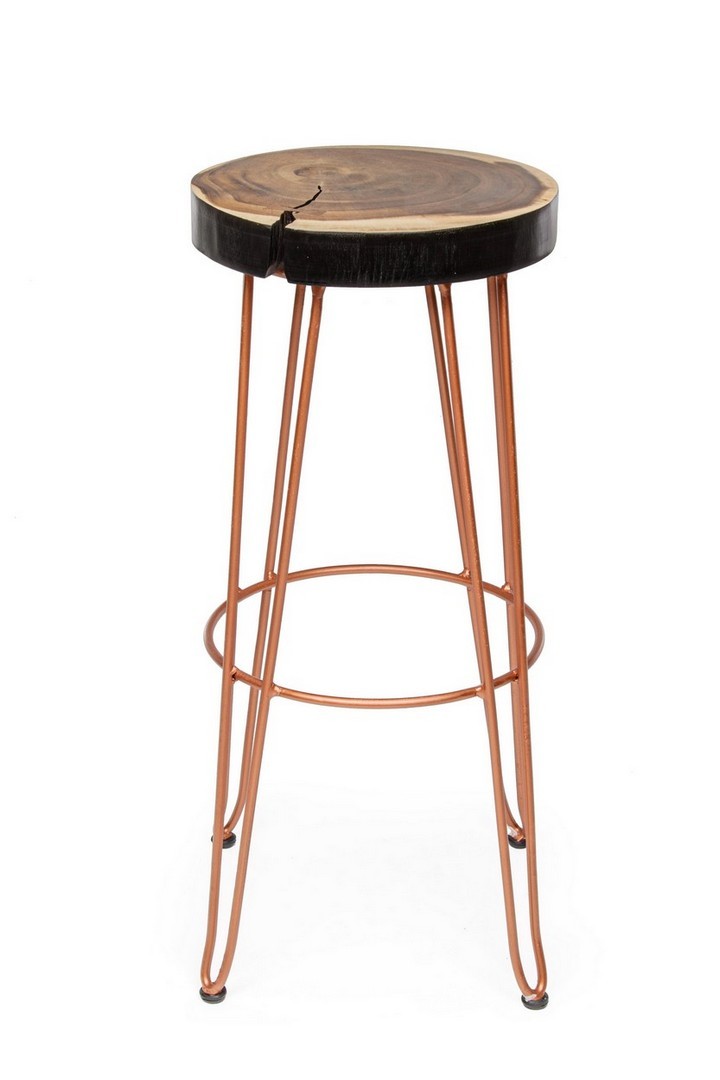 SEDUTA IN LEGNO MUNGUR (TRONCO), GAMBE IN ACCIAIO VERNICIATO A POLVERE EPOSSIDICA.