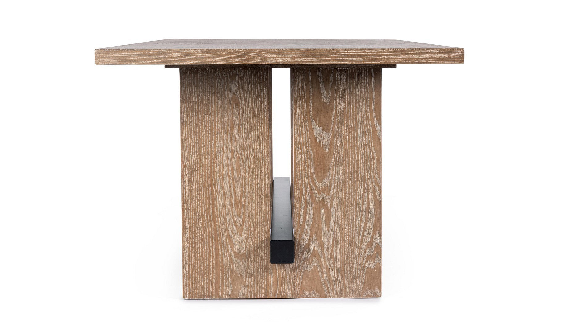STRUTTURA IN LEGNO DI QUERCIA. TRAVERSO GAMBE IN ACCIAIO. FINITURA A BASE DI NITROCELLULOSA.