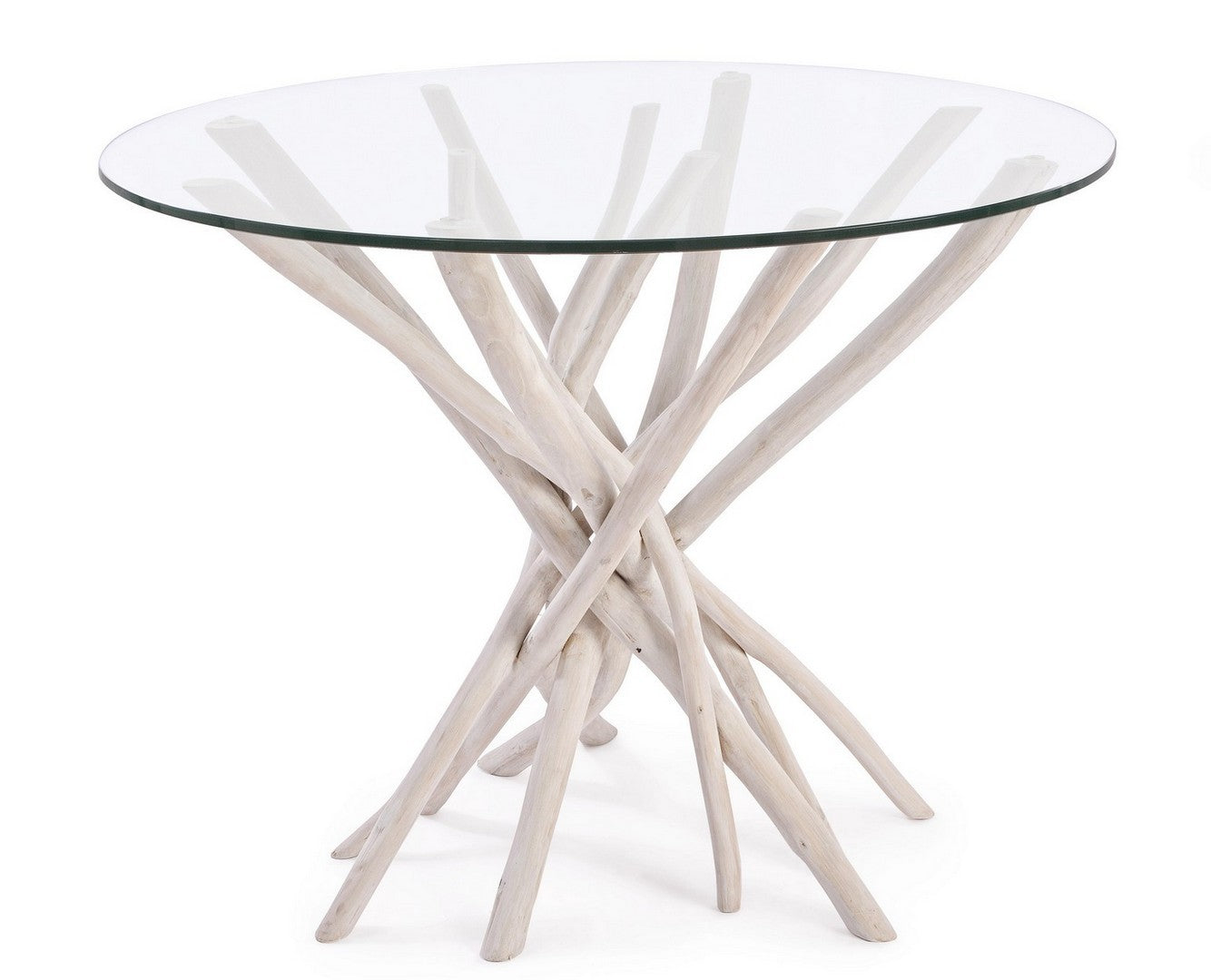 RAMI DI TEAK SBIANCATO CON FINITURA A BASE DI NITROCELLULOSA. VETRO TEMPERATO. SOLO PER USO INTERNO.