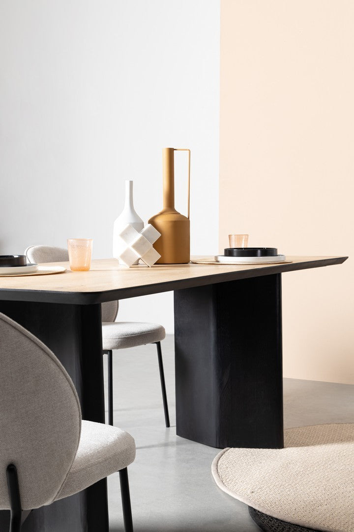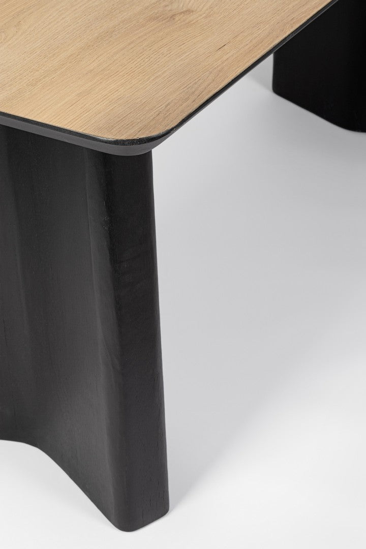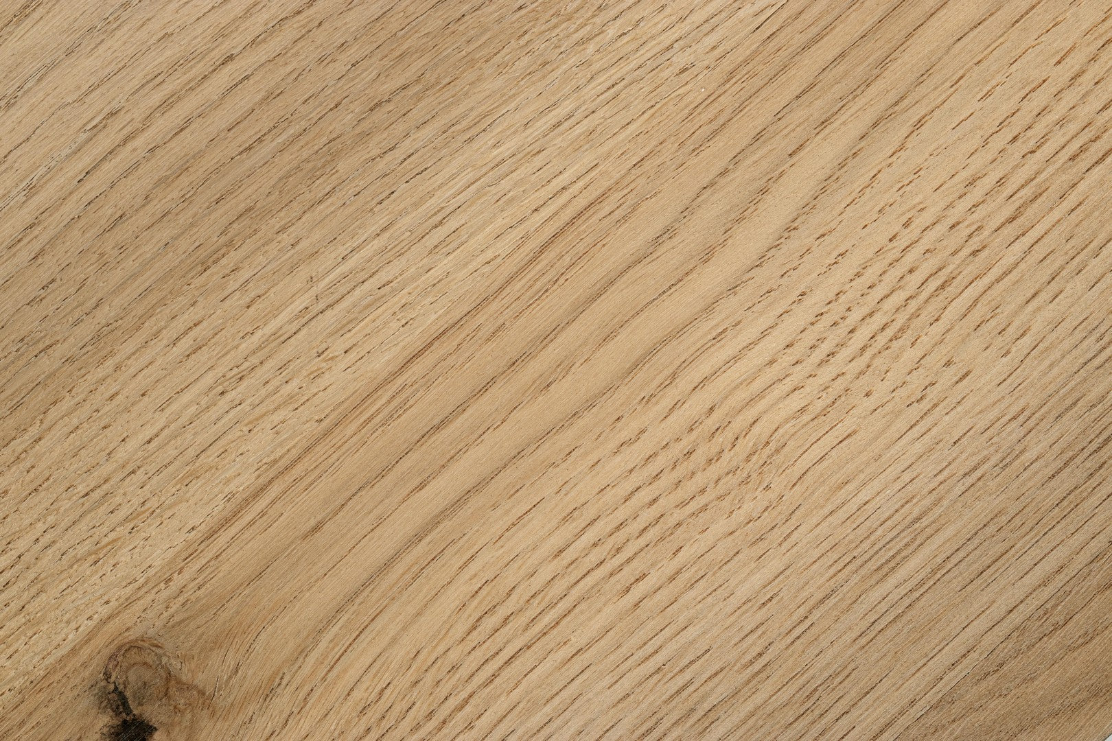 MDF IMPIALLACCIATO ROVERE. PIANO CON FINITURA NATURALE CON VERNICE A BASE D'ACQUA, GAMBE CON FINITURA A BASE DI NITROCELLULOSA.